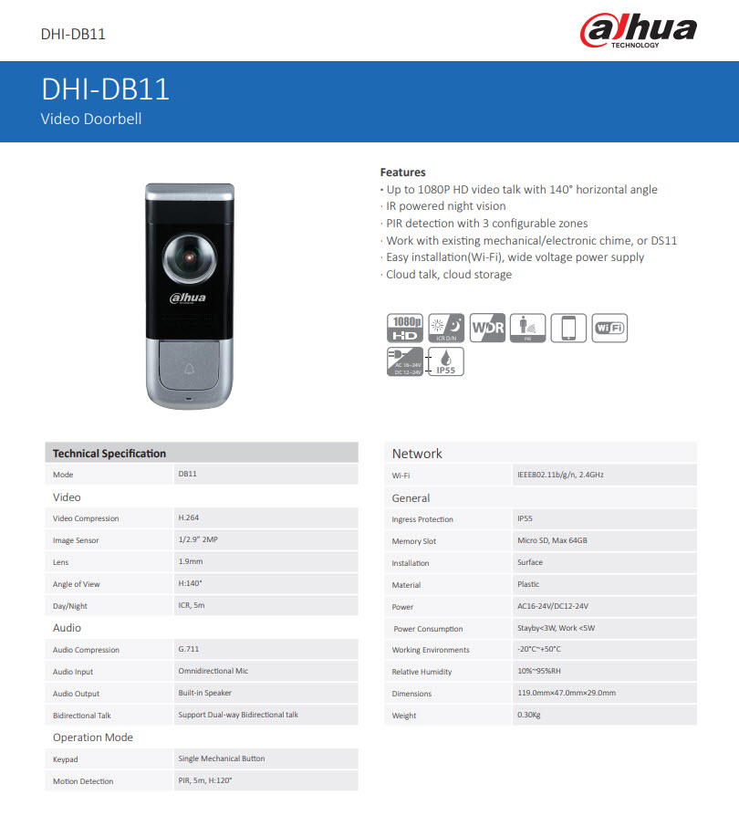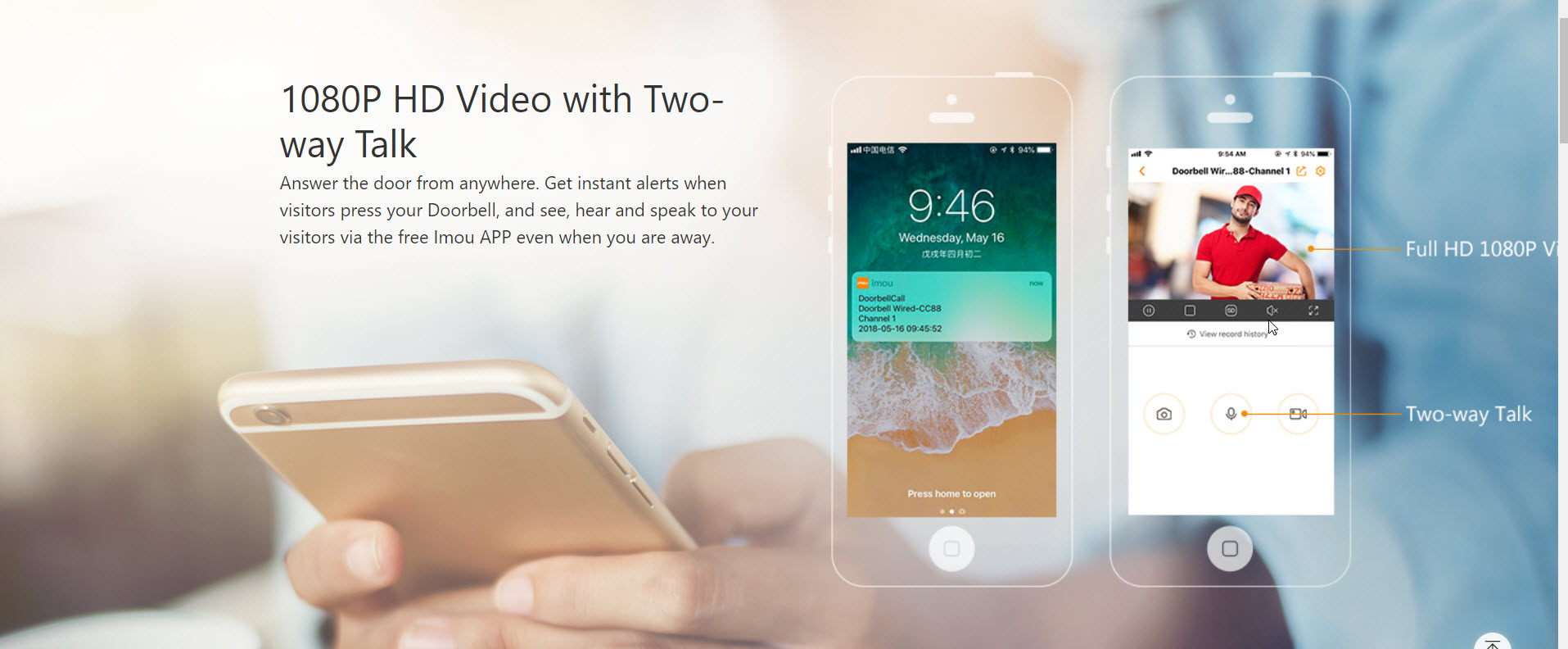 • Your existing doorbell (2 wires) can be connected and operated via this doorbell